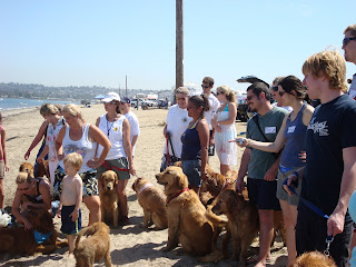 We had about 60 Golden Retrievers in attendance with their people, and everyone seemed to have a blast. This gathering was in preparation for a surf competition a bunch of us are competing in next weekend. Get this, the dogs, not the people, will be surfing. Our team is called the Golden SurFURS...pretty catchy, don't you think?