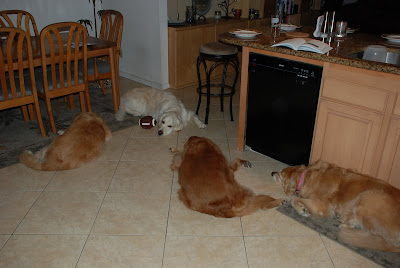 Kona sat quietly, praying for something to drop out of a pan. Good luck with that.