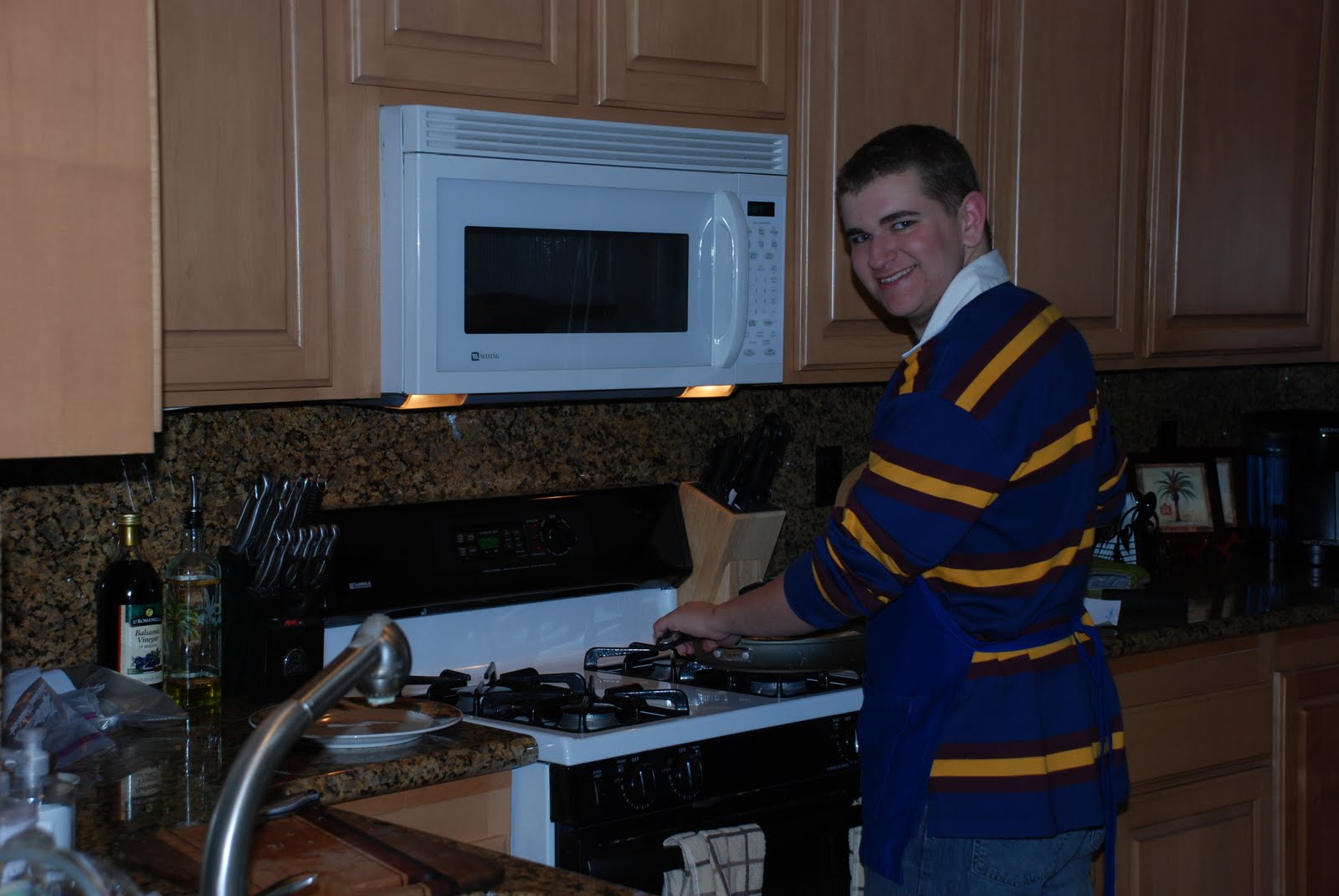 For my birthday (in Dec.) AJ promised to make me dinner. See, he'd taken a cooking class at school last year when he was a junior and had yet to prepare anything for us that he'd learned. So when he'd asked me what I wanted for my birthday, I told him I wanted him to make me dinner. Last night everything fell into place as far as timing, etc. so the boy hit the kitchen and showed us what he was made of!
